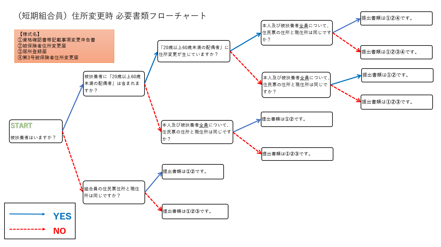 【短期組合員 住所変更時必要書類 フローチャート】