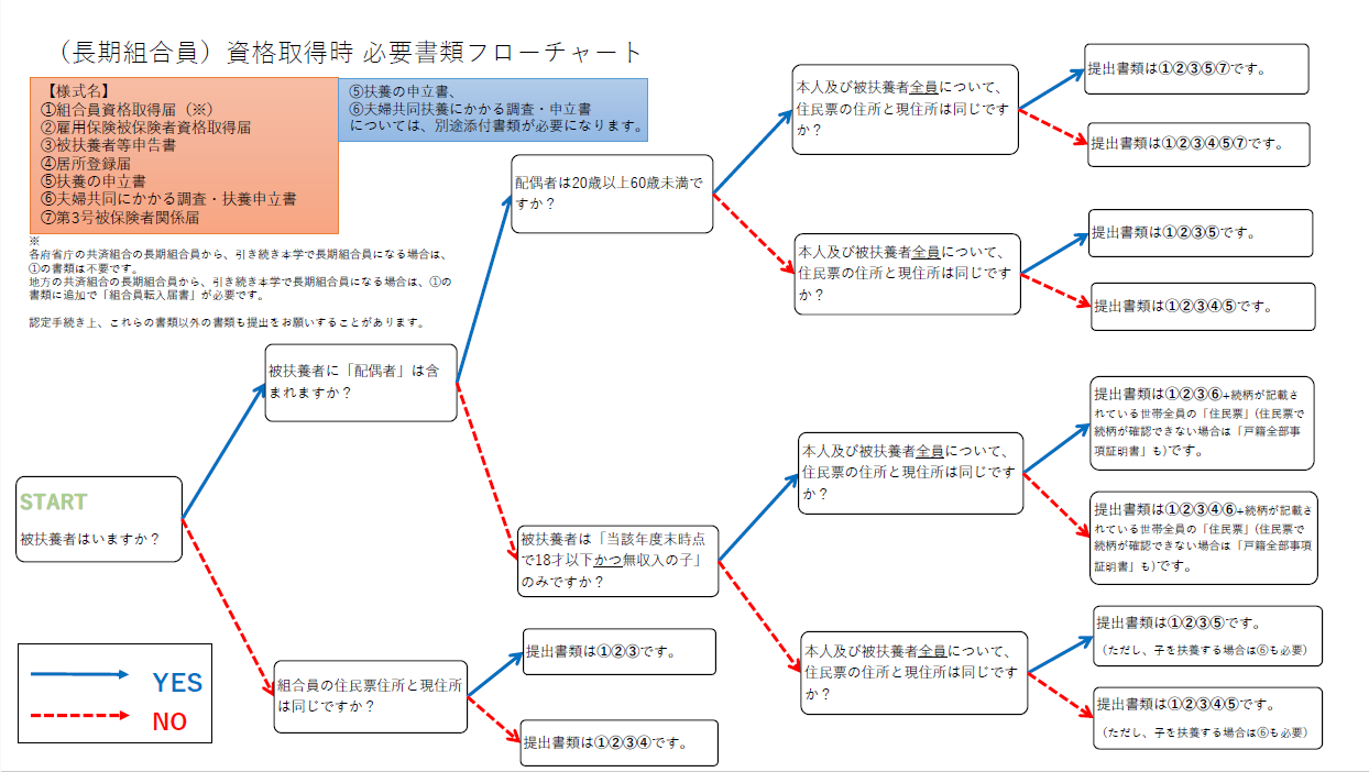 【長期組合員 資格取得時必要書類 フローチャート】