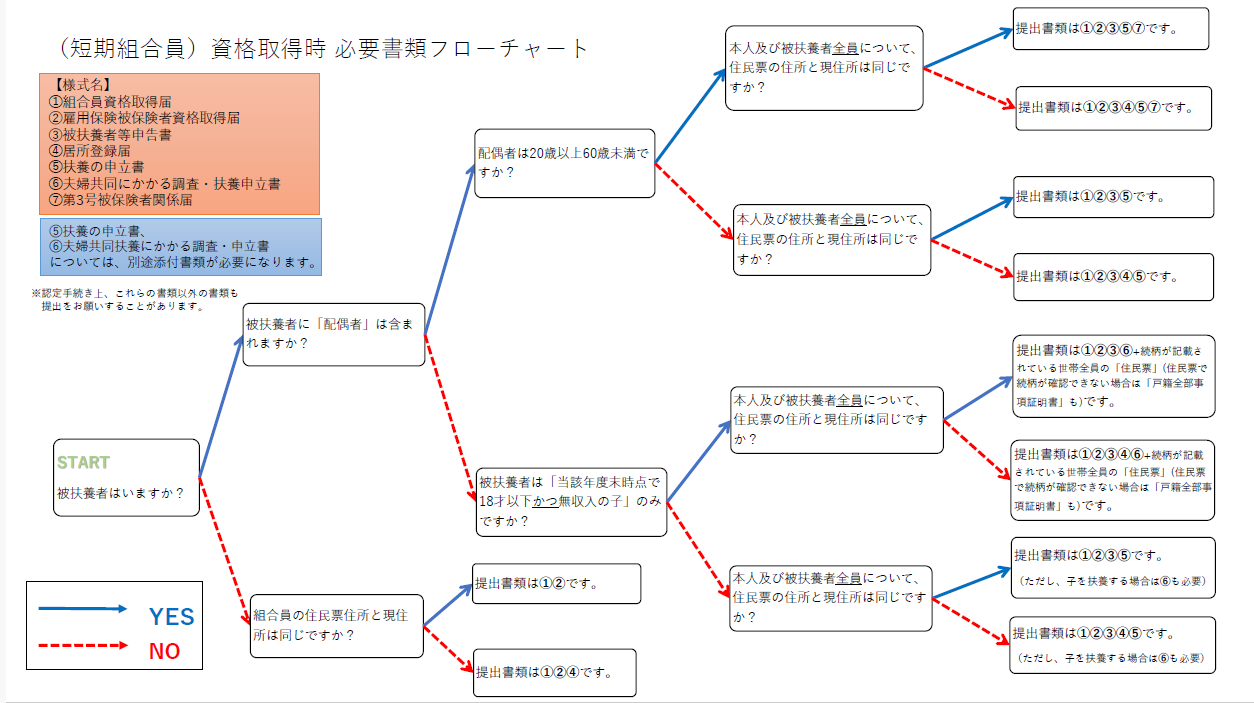 【短期組合員 資格取得時必要書類 フローチャート】