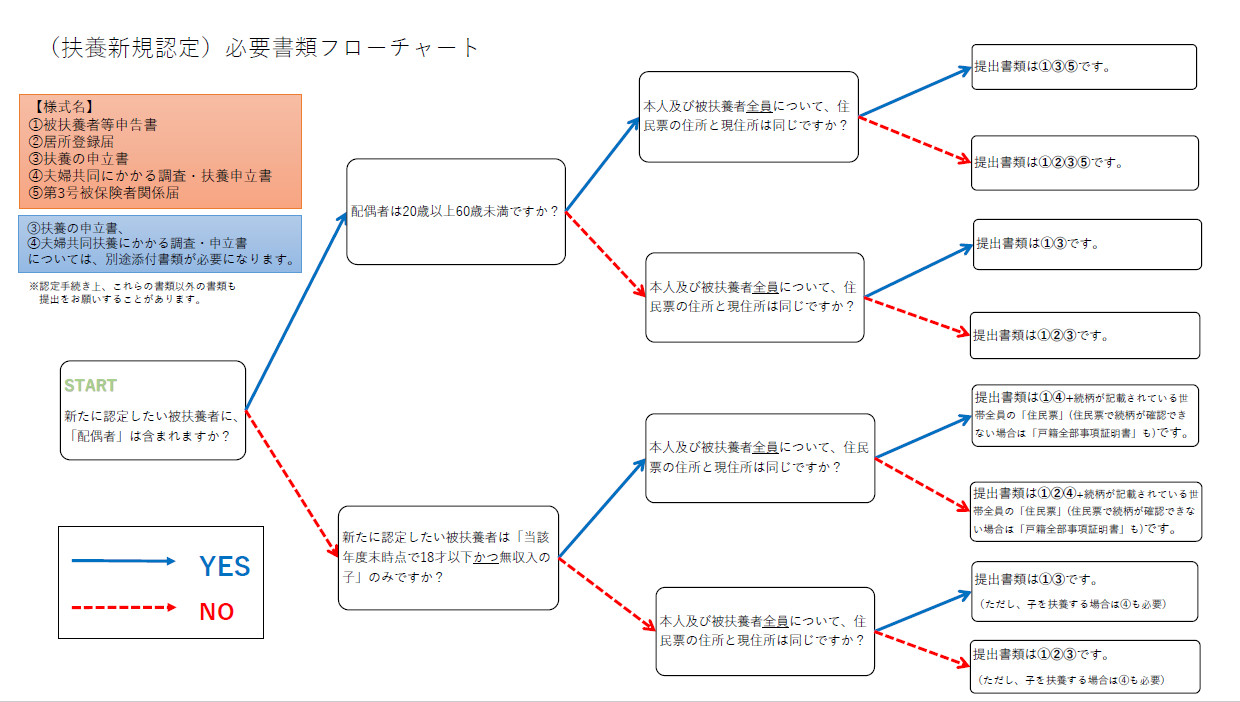 以下のフローチャートで、ご自身の提出が必要な書類が分かります。フローチャートに記載の番号と以下の表の番号は一致しています。
